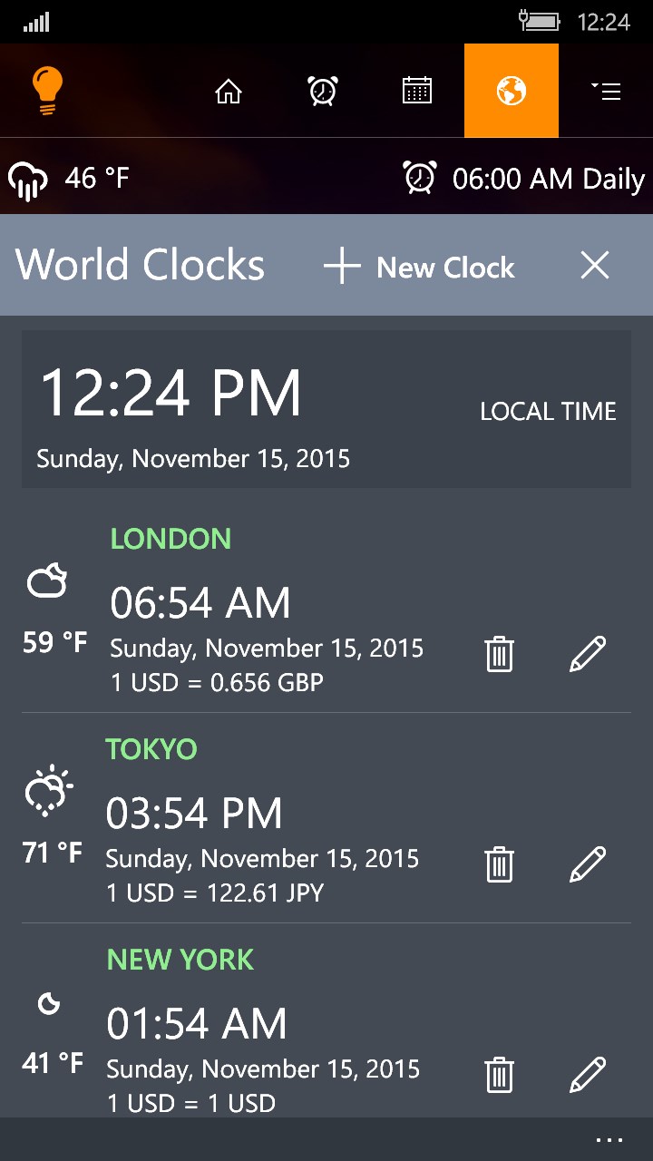 Microsoft Alarm Clock / Alarms, world clocks, timers, and a stopwatch.